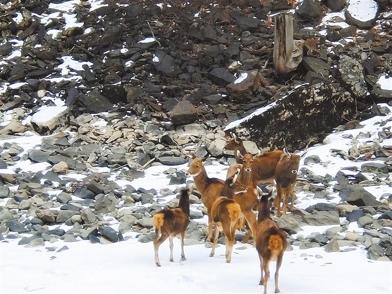 國家一級保護(hù)動(dòng)物——白唇鹿。(圖片由 昌都市森林消防支隊(duì)邊壩縣駐防分隊(duì) 提供)