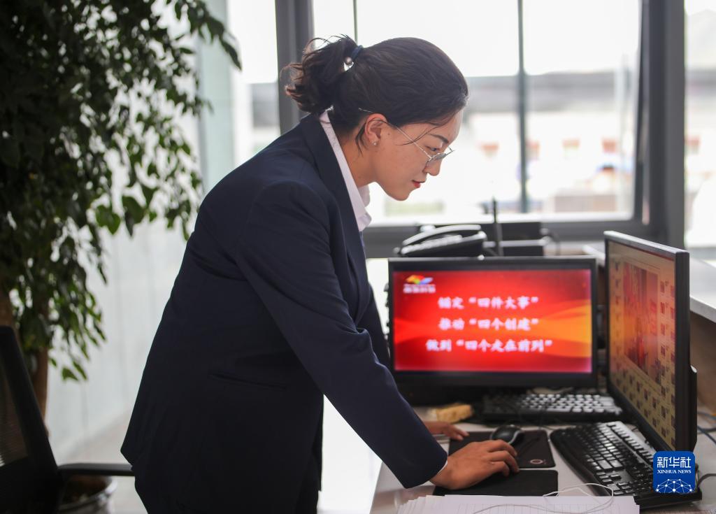 “格?;ㄩ_”大學(xué)生就業(yè)創(chuàng)業(yè)特訓(xùn)營(yíng)學(xué)員、西藏藏建科技股份有限公司職員旦珍在工作中(2022年6月24日攝)。新華社記者 姜帆 攝