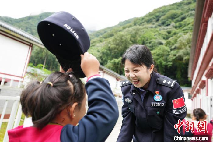 圖為亞東出入境邊防檢查站民警楊琳與龐達村雙語幼兒園小朋友一起玩游戲。李錦輝 攝