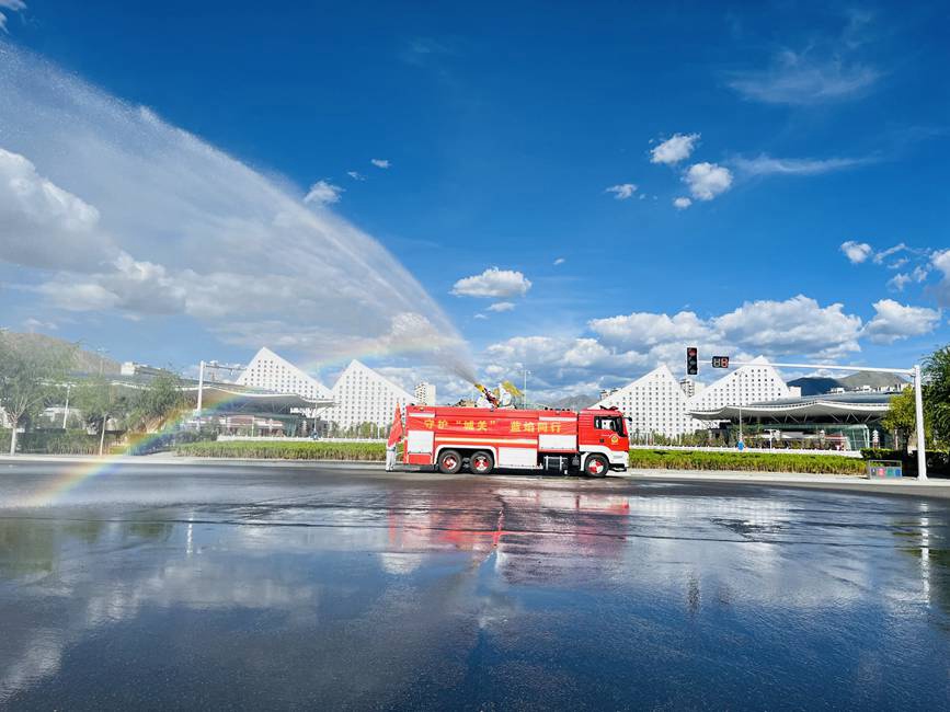 2022年8月13日,一條《彩虹下的心愿,愿疫情早日退去》的視頻刷爆拉薩市民的朋友圈,視頻中消防指戰(zhàn)員化身“大白”,逆行而上,在拉薩主城區(qū)以社區(qū)網(wǎng)格為基本單位開展消殺。當(dāng)天,消防車30輛、指戰(zhàn)員146人集體出動(dòng),噴灑而出的消毒液在陽光下形成了一道道彩虹。