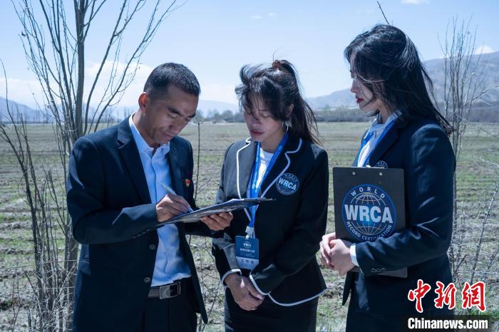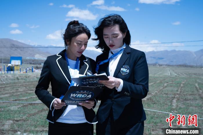 圖為世界紀(jì)錄認(rèn)證中方代表劉一哲(中)為隆子縣頒發(fā)世界紀(jì)錄認(rèn)證證書。貢嘎來松 攝