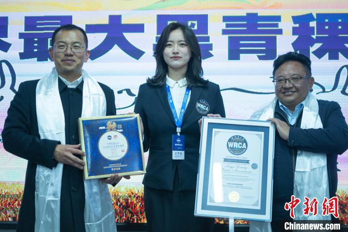 10日,經(jīng)世界紀(jì)錄認(rèn)證(WRCA)官方人員現(xiàn)場審核,西藏隆子縣被認(rèn)證為“世界最大黑青稞種植基地”。