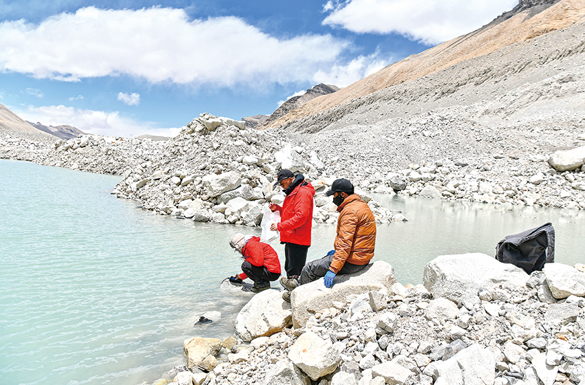 “我們沿著喜馬拉雅山脈做了很多工作,采集了2000多份樣品?!眲⒓褲M懷憧憬地說,“我們會從大本營出發(fā)努力接近海拔7000米區(qū)域,完成15個雪冰樣品和15個沙石樣品采集。希望通過一塊塊拼圖,努力還原青藏高原形成演化的‘大圖紙’?!?/p>