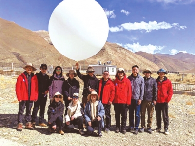 “我們選擇了對水汽通道進(jìn)行觀測研究,首先就要進(jìn)行實(shí)地考察。喜馬拉雅山脈中段有數(shù)條河谷,水汽很可能是通過河谷進(jìn)入青藏高原。大氣小分隊(duì)選取珠峰東坡的嘎瑪溝進(jìn)行考察,開展臨時(shí)機(jī)動(dòng)觀測對這個(gè)設(shè)想進(jìn)行驗(yàn)證。之后,在嘎瑪溝兩端的曲當(dāng)鄉(xiāng)和陳塘鎮(zhèn),架設(shè)了兩個(gè)自動(dòng)氣象站和兩套水汽探測系統(tǒng),并在曲當(dāng)鄉(xiāng)開展了無線電氣球探空試驗(yàn)?!崩蠲平榻B。