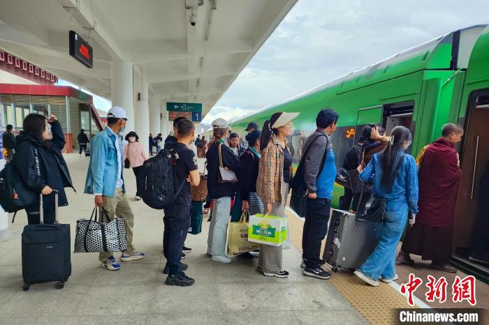 圖為暑運期間,旅客在日喀則火車站乘坐高原復(fù)興號。拉薩車務(wù)段 供圖