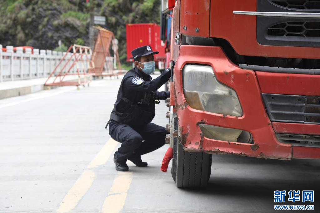 這是扎西頓珠正對(duì)入境貨車進(jìn)行車體檢查。(新華網(wǎng)發(fā) 鄒興國(guó) 攝)