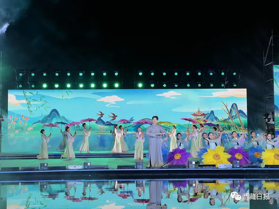 活動在文藝演出《雪頓新韻》中拉開序幕,絢麗的燈光、精彩的文藝演出,為觀眾帶來了一場精美的視覺盛宴。開幕式由序篇、上篇、下篇、尾聲四個章節(jié)組成,整場文藝演出融合歌曲、舞蹈、藏戲、京劇、昆曲、街舞等元素,并以半實景的舞臺藝術(shù)形式上演《百年雪頓》等節(jié)目,在線上線下呈現(xiàn)一臺傳統(tǒng)與現(xiàn)代交相輝映、傳承與創(chuàng)新和諧相融、歷史與未來一脈相承的文藝盛宴。