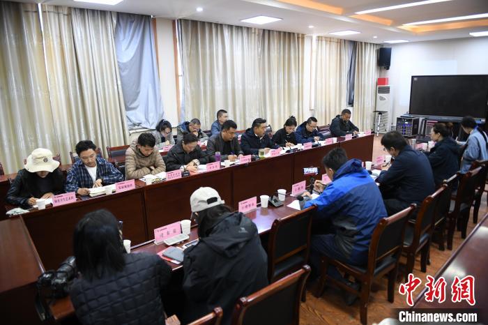 圖為那曲市教育局相關(guān)負(fù)責(zé)人與媒體記者展開座談交流會。貢嘎來松 攝