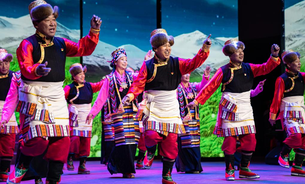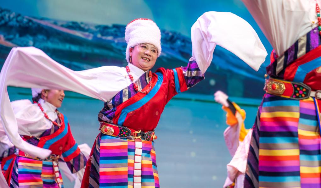 10月23日,老年文藝團(tuán)的演員們表演舞蹈節(jié)目。新華社發(fā)(丁增尼達(dá)攝)