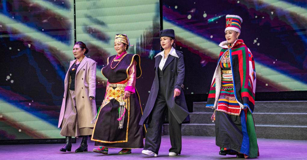 10月23日,“藏秀”模特隊(duì)的模特們?cè)谧咝?。新華社發(fā)(丁增尼達(dá)攝)