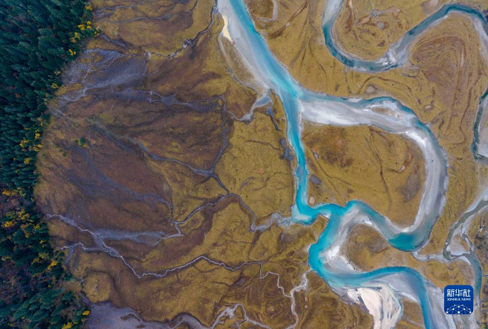 這是在林芝工布江達(dá)縣拍攝的景觀(無人機照片,10月28日攝)。新華社記者 姜帆 攝