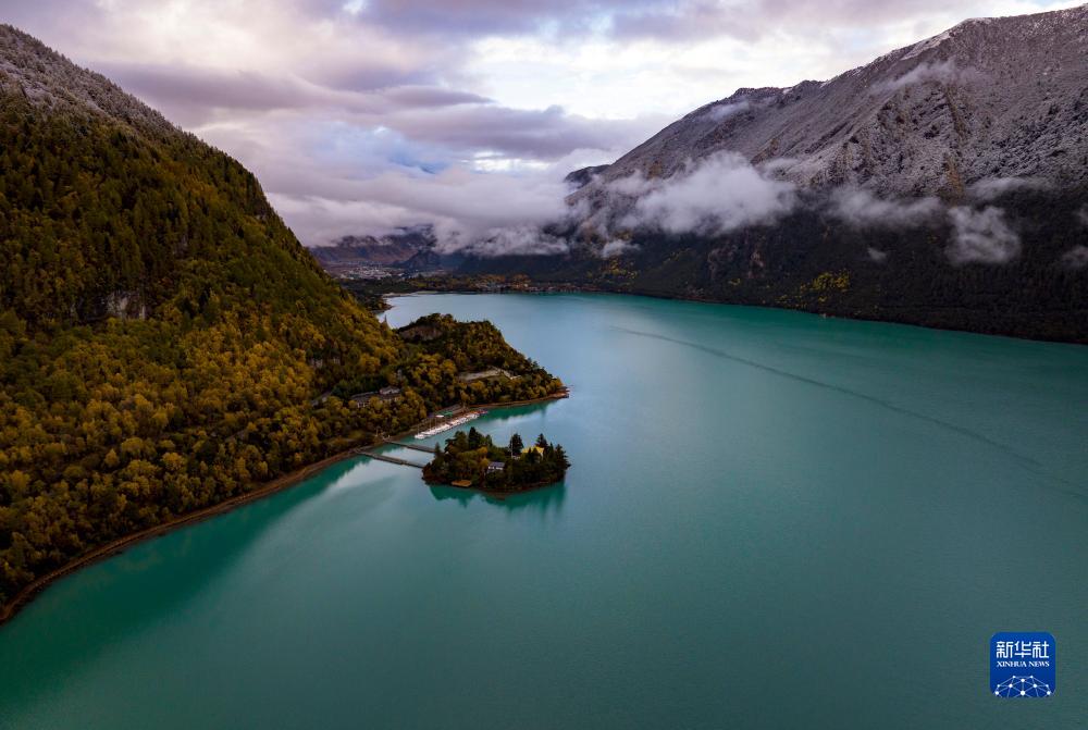 這是在林芝工布江達(dá)縣拍攝的巴松錯(無人機照片,10月28日攝)。新華社記者 姜帆 攝