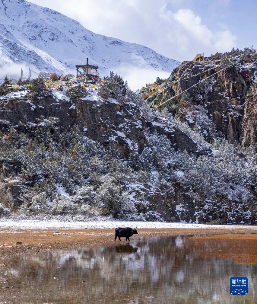 西藏昌都市邊壩縣位于念青唐古拉山脈南麓,由于海拔較高,10月末的邊壩縣已迎來(lái)降雪。這里雪山聳立,冰洞湛藍(lán),飛雪綿綿,巖羊在雪面上行走,美景如畫。