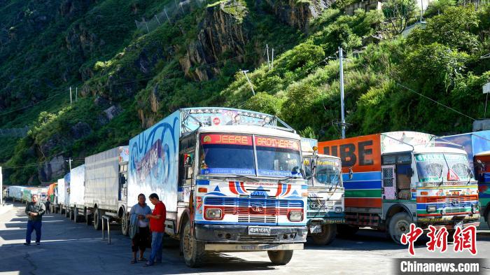 2018年7月26日,西藏自治區(qū)日喀則吉隆口岸,尼泊爾車輛排隊等待通關。(資料圖) 中新社記者 江飛波 攝