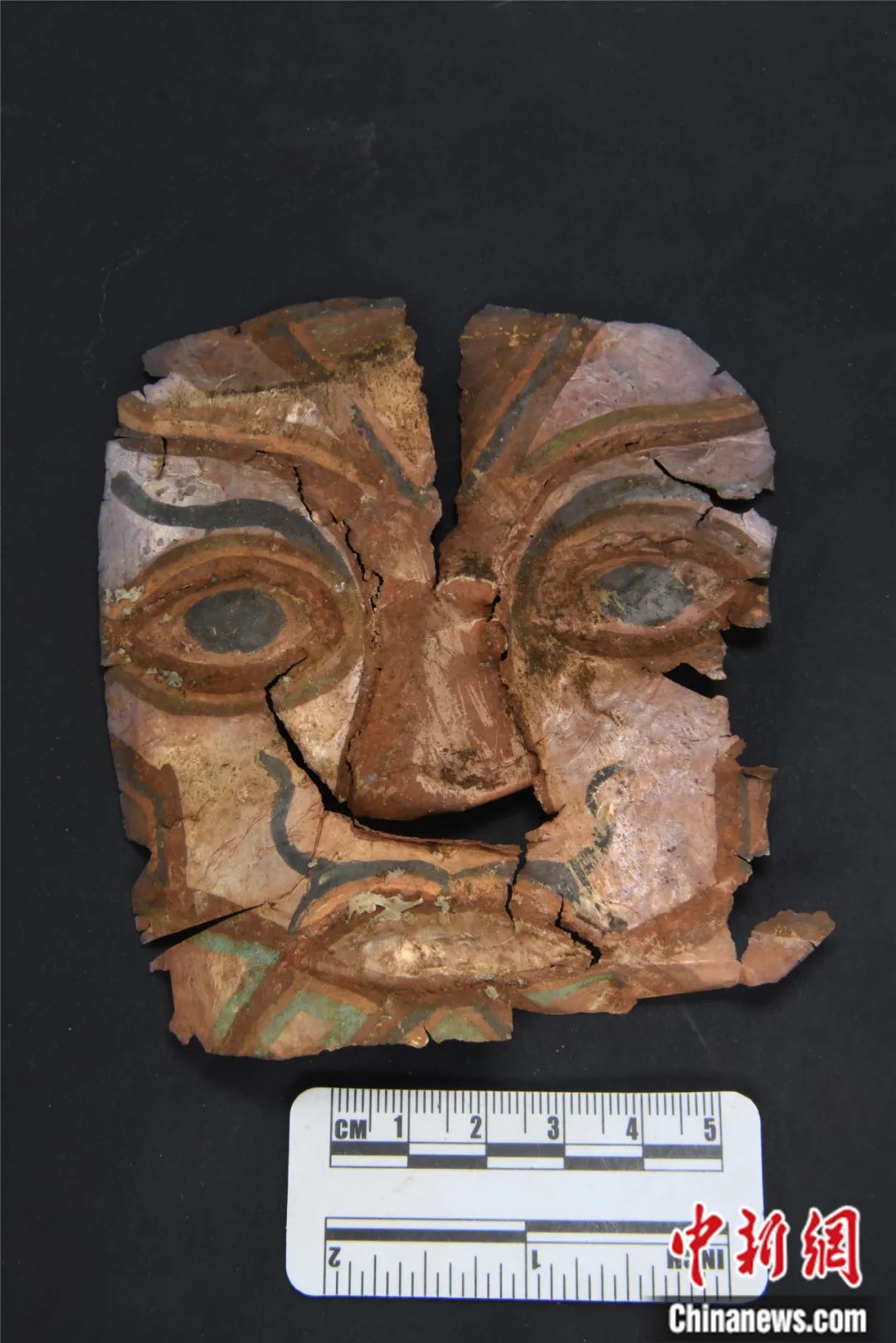 西藏札達桑達隆果墓地出土的銀質(zhì)鎏金面飾。國家文物局 供圖