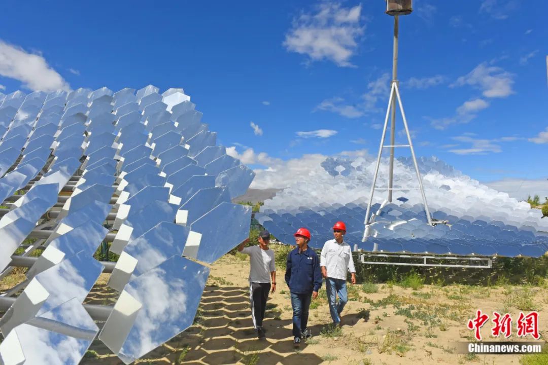 2020年6月,西藏山南市扎囊縣,工作人員對西藏首座多碟共焦塔式聚光集熱器的電力設(shè)施進行驗收。宋衛(wèi)星 攝