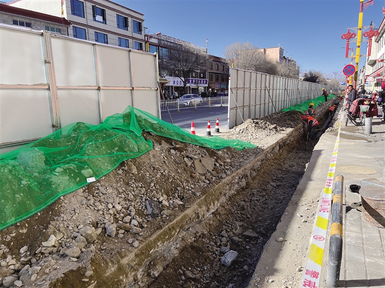 時值深冬,拉薩城中有一群人正如火如荼地忙碌著。12月18日,記者來到納金路,工人們正在進行路面燃氣管道改造。挖掘的泥土被綠色網(wǎng)蓋住,并未四處飛揚,剛澆筑的混凝土都鋪上厚厚的棉被以達到養(yǎng)護效果。四川佳成建設有限公司負責此次路面項目,現(xiàn)場管理陳文韜告訴記者:“為了盡快完成工作,還市民一條通暢的道路,我們已經(jīng)將工人分為24小時3班制,在保證安全的前提下加快施工進度,預計在12月31日左右完成路面的工作。”陳文韜還表示,路面大部分工程都是通過人工挖掘,噪音不大。如遇見需要使用機器的情況,也會在白天施工,晚上10點前必須停止,爭取做到不給居民的生活帶來困擾。
