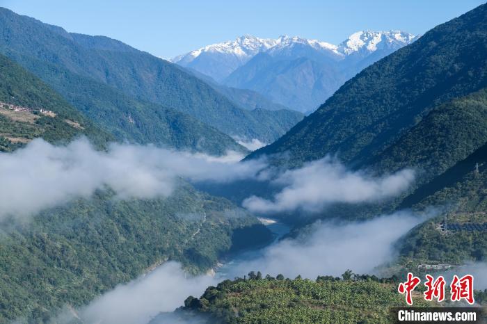 12月22日,西藏雅魯藏布江墨脫段云海、雪山與峽谷風光。中新社記者 江飛波 攝