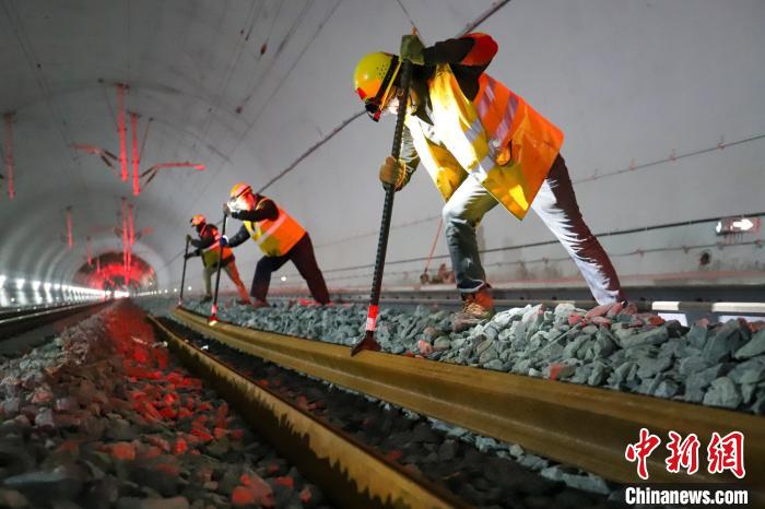 圖為1月1日,西藏拉林鐵路接收新軌作業(yè)現(xiàn)場(chǎng)。拉巴次仁 攝