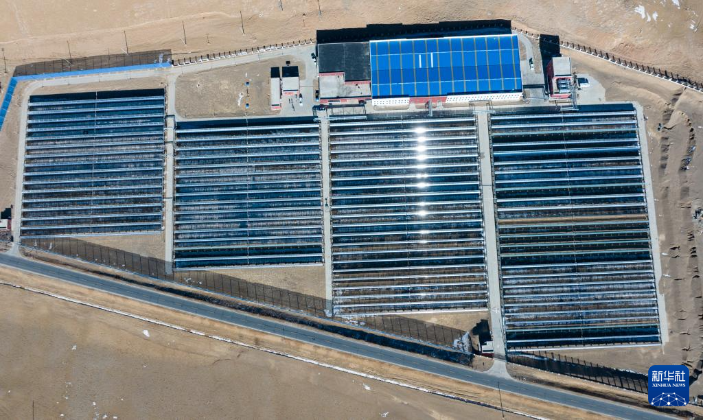 鳥瞰申扎縣城集中供暖項(xiàng)目太陽能集熱場(無人機(jī)照片,1月6日攝)。新華社記者 姜帆 攝