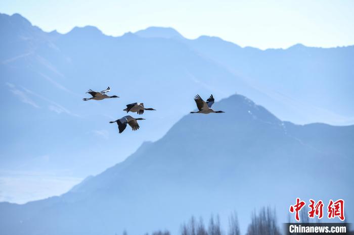 1月10日,西藏雅魯藏布江中游河谷黑頸鶴國(guó)家級(jí)自然保護(hù)區(qū)日喀則片區(qū)拉孜縣曲瑪鄉(xiāng)境內(nèi),大量越冬的黑頸鶴翩翩起舞,在濕地和農(nóng)田間覓食、嬉戲。近年來,隨著國(guó)家加大青藏高原生態(tài)保護(hù)力度,西藏多措并舉實(shí)施生態(tài)建設(shè),廣大農(nóng)牧民民眾保護(hù)野生動(dòng)物的意識(shí)不斷提升,黑頸鶴及其棲息地得到了較好的保護(hù),黑頸鶴數(shù)量逐年遞增。據(jù)悉,每年11月至次年3月,日喀則市拉孜縣、謝通門縣、桑珠孜區(qū)等地都會(huì)有黑頸鶴在此棲息過冬,最高數(shù)量達(dá)到8000只左右。