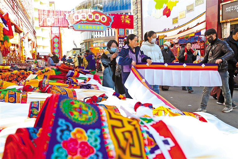 春節(jié)、藏歷新年臨近,年貨市場(chǎng)開(kāi)始熱鬧起來(lái)。山南市澤當(dāng)鎮(zhèn)市民紛紛走進(jìn)大型商超和農(nóng)貿(mào)市場(chǎng)選購(gòu)節(jié)日貨品,商戶(hù)備足貨源,推出讓利促銷(xiāo)活動(dòng),滿(mǎn)足各族群眾消費(fèi)需求,年貨市場(chǎng)呈現(xiàn)出購(gòu)銷(xiāo)兩旺的良好態(tài)勢(shì)。