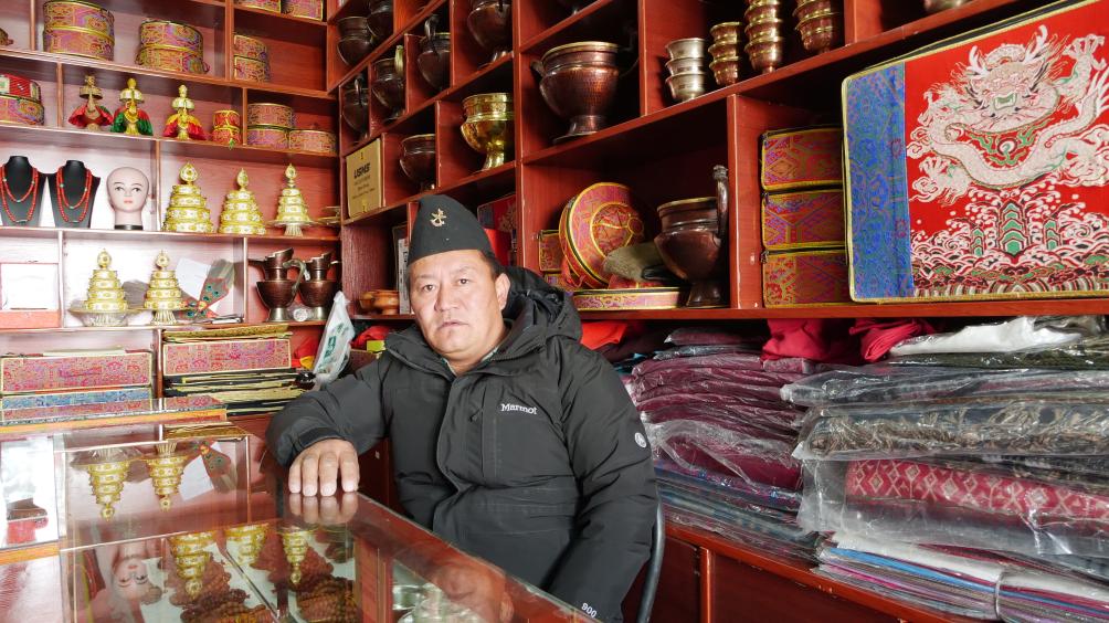 在普蘭縣唐嘎邊貿(mào)市場里經(jīng)商的尼泊爾籍商人米瑪(1月7日攝)。新華社記者陳尚才攝