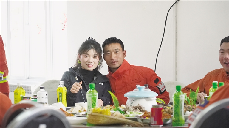 在大隊(duì)里,孫再藏與妻子一起包餃子、貼春聯(lián)、看春晚,和消防員們共同歡度佳節(jié)。除夕夜,孫再藏和妻子手挽著手,在操場(chǎng)上漫步。妻子抬頭看著丈夫,眼中充滿了驕傲和溫柔。她說:“你們過年還挺熱鬧的,好好站崗值班,家里不用擔(dān)心,有我呢。”