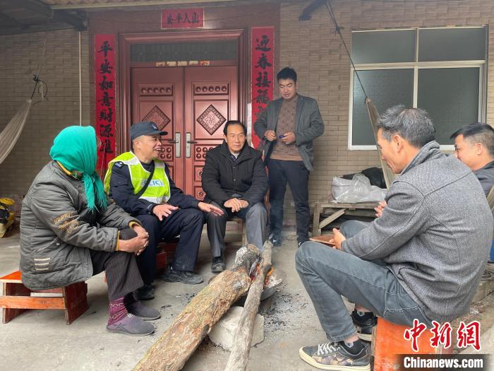 袁倫在與村民拉家常的同時開展普法宣傳。黃巍 攝