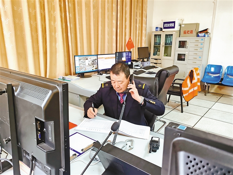 “21時(shí)05分,室外防護(hù)正?!痹谧鳂I(yè)現(xiàn)場,偉色措姆本著高度的責(zé)任心,眼神銳利,一邊通過對講機(jī)和室內(nèi)聯(lián)系,一邊瞭望并認(rèn)真在防護(hù)記錄上做好記錄。
