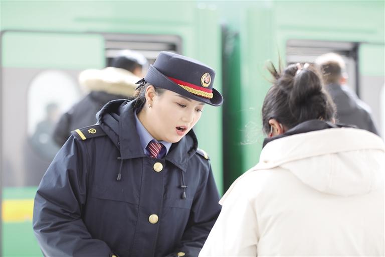春運開始后,白瑪拉增每班都早早到車站做準(zhǔn)備,提前上站臺,查看顯示屏是否正常工作、股道是否有異物、扶梯是否正常運行。同時,白瑪拉增會根據(jù)一天的客流量和天氣變化,列出班組計劃、做好預(yù)案,尤其是梳理重點旅客信息,白瑪拉增和同事們提前與日喀則市志愿者協(xié)會加強對接,合理安排人員,及時補充人手。今年春節(jié)和藏歷新年是同一天,返鄉(xiāng)流、探親流、旅游流疊加,日喀則火車站客流量激增,白瑪拉增一刻不停地在候車室、站臺間忙碌著,一天的微信步數(shù)超過2萬步,但她卻始終神采奕奕,不知疲倦、不厭其煩,隨時為旅客答疑解惑。