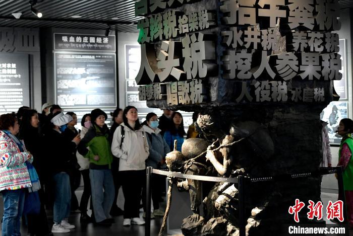 圖為觀眾在西藏百萬農奴解放紀念館參觀。李林 攝