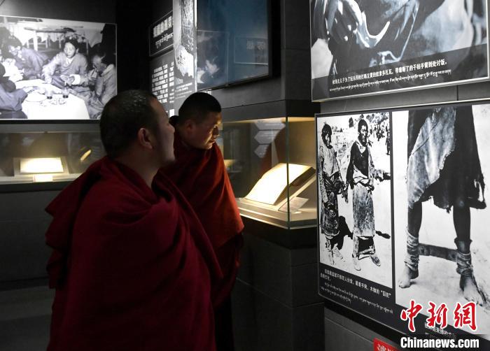 圖為僧人在西藏百萬農奴解放紀念館參觀。李林 攝