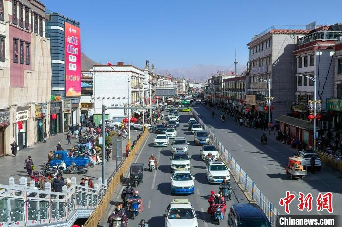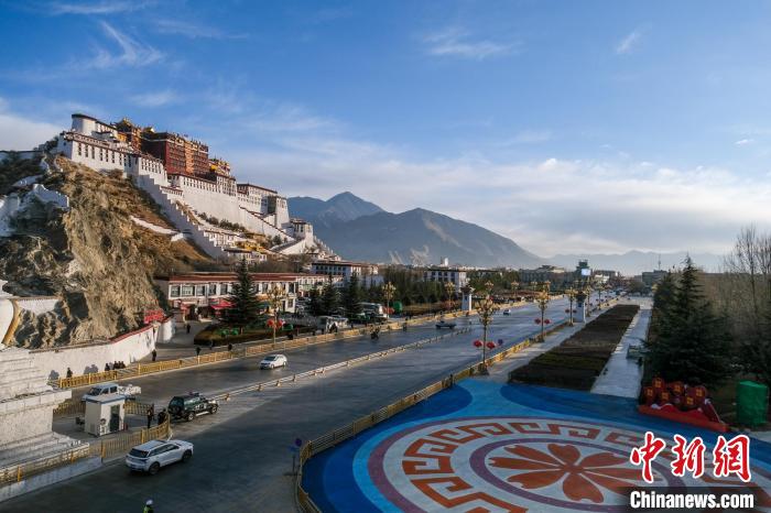 資料圖為2024年1月1日,車輛途經(jīng)布達(dá)拉宮。江飛波 攝