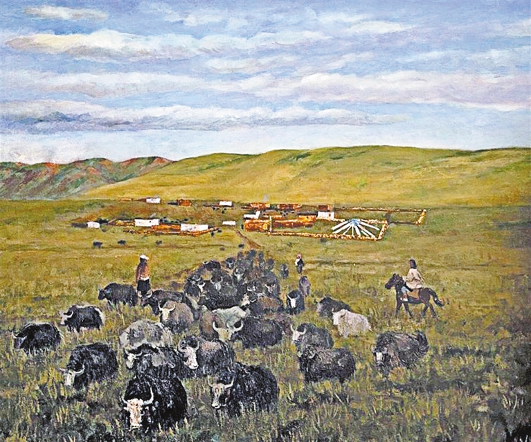 美術(shù)二等獎作品《幸福西藏·牧區(qū)印象》。 作者 郭扎