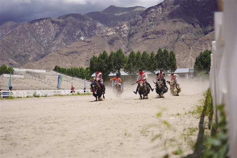 6月22日,由拉薩市人民政府主辦的拉薩首屆農(nóng)牧民運(yùn)動(dòng)會(huì)在拉薩開幕。本屆運(yùn)動(dòng)會(huì)為期5天,設(shè)競技項(xiàng)目、民族傳統(tǒng)與趣味項(xiàng)目兩個(gè)大類,涵蓋押加(大象拔河)、賽牦牛、藏棋、秀茲(藏式骰子)等19個(gè)比賽項(xiàng)目,共有來自拉薩市各縣(區(qū))、功能園區(qū)的11支代表隊(duì)500余名運(yùn)動(dòng)員參賽。