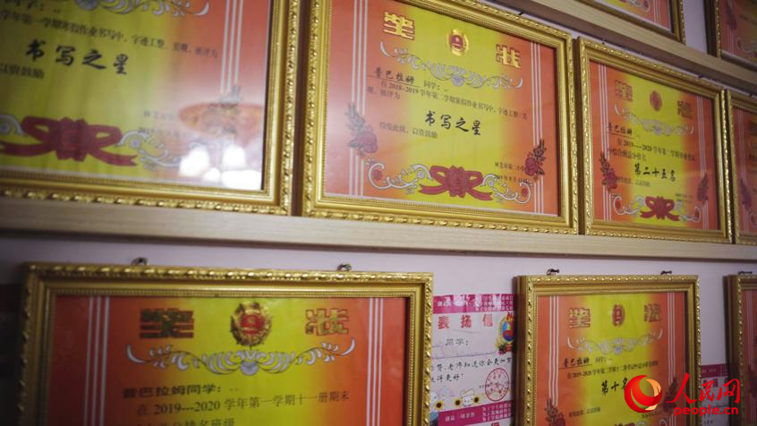 達(dá)瓦堅(jiān)參家墻上的獎(jiǎng)狀。人民網(wǎng)記者 趙晨攝