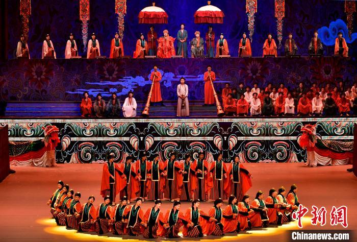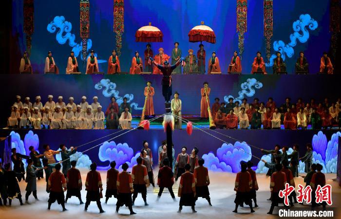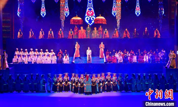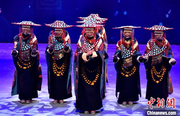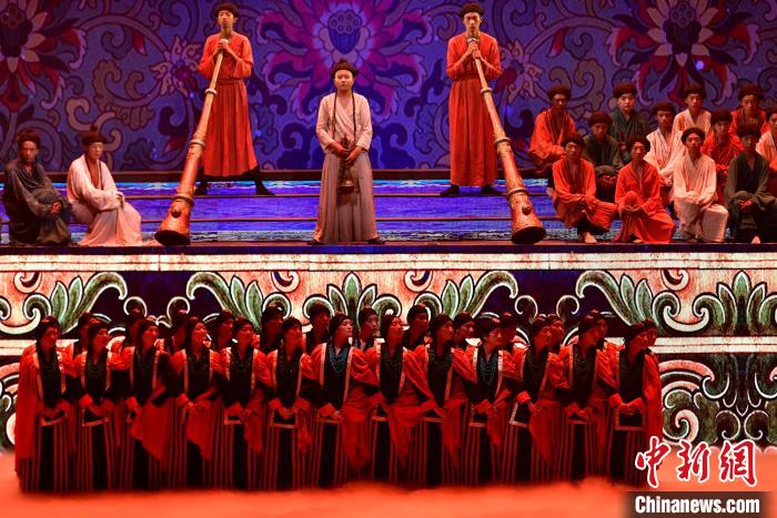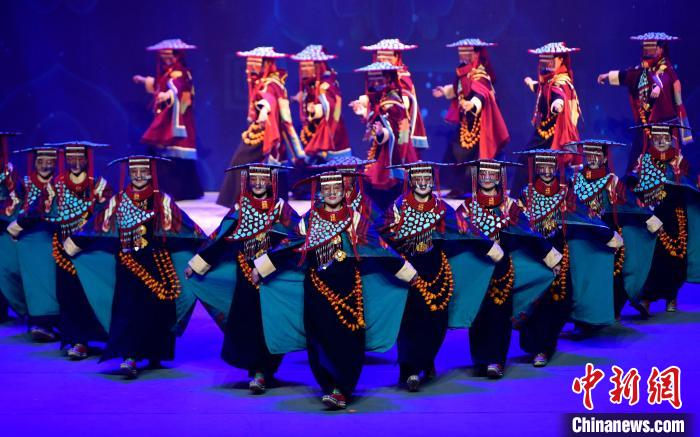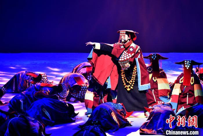 7月19日晚,《緣起象雄·古格遺風》情景歌舞詩劇在西藏拉薩上演。該劇通過歌、舞、詩、畫等多種藝術形式,帶領觀眾身臨其境地感受古象雄文化的獨特魅力和古格王朝的輝煌與傳奇。圖為《緣起象雄·古格遺風》演出現(xiàn)場。中新社記者 李林 攝
