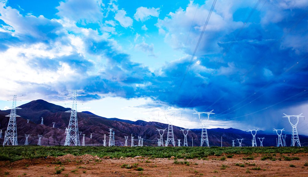 西藏日喀則市拉孜縣連片鐵塔。趙清鵬攝