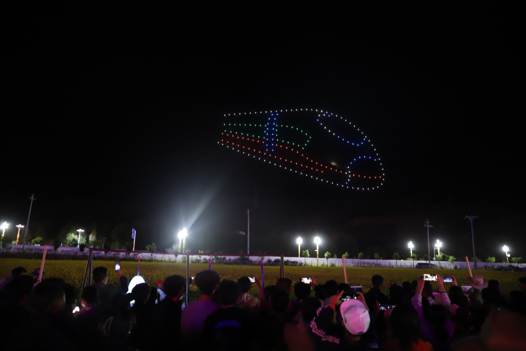 伴隨著篝火晚會的進行,200架無人機騰空而起,通過傳奇昌都、團結(jié)發(fā)展、產(chǎn)業(yè)興旺3個篇章舞動出一場流光溢彩的視覺盛宴,以極具時尚先鋒的方式向大家推介傳奇昌都,推介奇境貢覺。