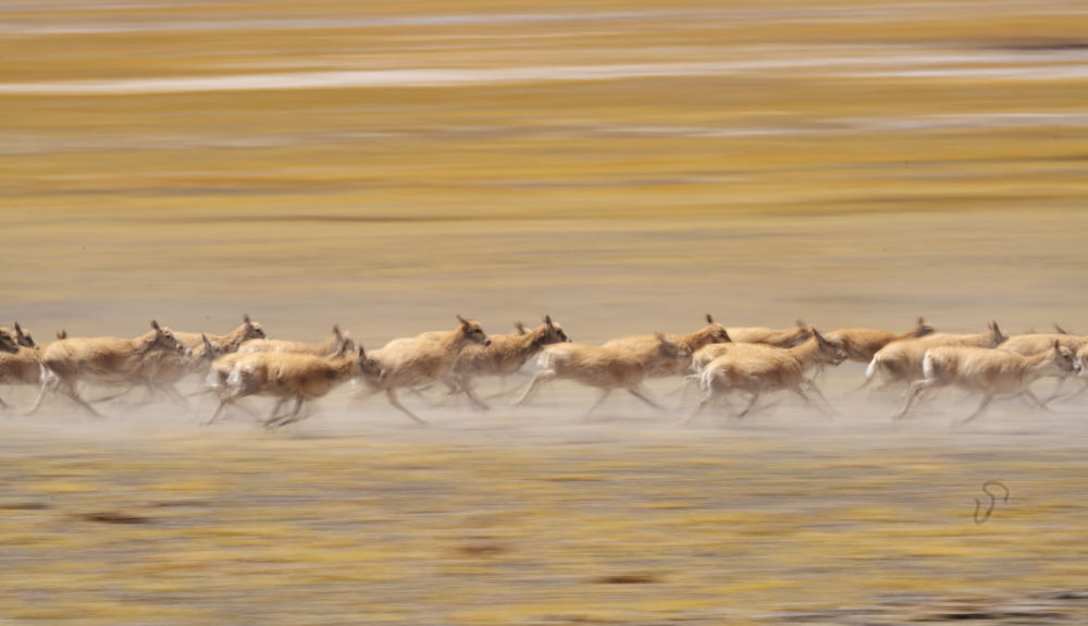 2024年6月13日,遷徙中的藏羚羊在西藏羌塘國(guó)家級(jí)自然保護(hù)區(qū)奔跑。