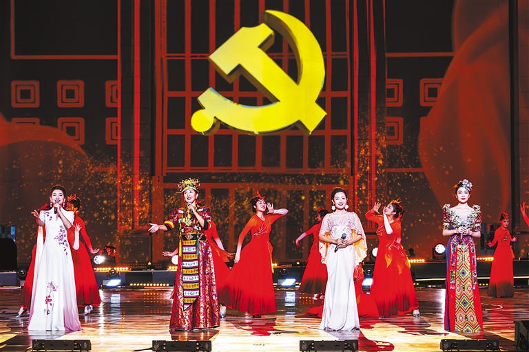 湖南、湖北、安徽三省和中糧集團(tuán)對(duì)口支援山南以來,一批又一批援藏干部人才把山南當(dāng)作第二故鄉(xiāng),與各族人民結(jié)下了跨越山海的深情厚誼。短片《只為你唱的歌》,展示援藏工作者背后的故事和家屬日常生活中的酸甜苦辣。情境合唱《追風(fēng)趕月的人》,是一場為所有援藏工作者精心設(shè)計(jì)的特別演出,他們的家屬共同帶來了一首溫情之歌,送出了家屬們對(duì)援藏工作者的堅(jiān)定支持和無盡的愛。女子群舞《格桑芙蓉并蒂開》,展現(xiàn)了湖南、山南兩地人民心手相牽的美好畫面?!俺礁杞o黨聽,我把黨來比母親……”山南市三小格桑花合唱團(tuán)孩子們的聲音直抵人心,隨后湖南、湖北、安徽和山南的歌手們共同唱響《唱支山歌給黨聽》。
