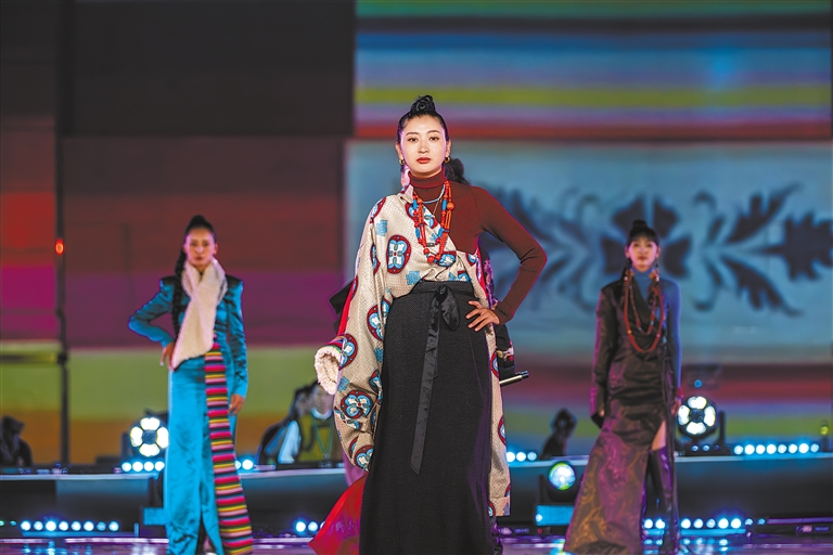 服裝秀表演《天上的羊卓雍措》在晚會(huì)中驚艷亮相。系列服飾完美融合了藏族傳統(tǒng)服飾元素與當(dāng)代時(shí)尚潮流,是由湖南省援藏工作隊(duì)株洲工作組的成員們以扎囊縣氆氌為原料創(chuàng)作而成。開幕式總導(dǎo)演李詞岳說:“為了更好地展現(xiàn)舞臺(tái)效果,我們團(tuán)隊(duì)克服高原反應(yīng),專門前往羊卓雍措拍攝服裝秀相關(guān)素材,希望通過這次服裝秀讓更多人了解山南、走進(jìn)山南?!?/p>