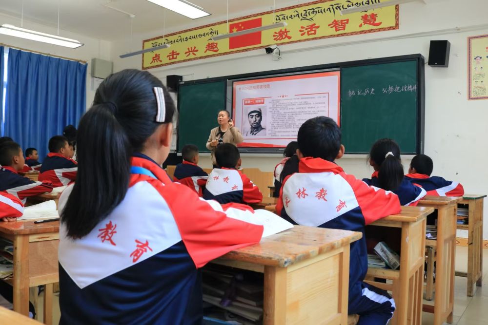 9月3日,林芝市米林市小學(xué)副校長(zhǎng)曾潔為學(xué)生上課。新華社記者沈曉朦 攝