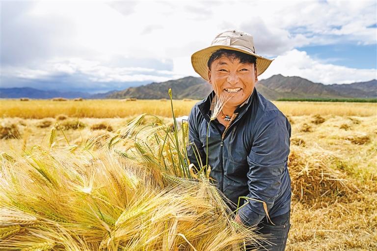 山南市扎囊縣扎其鄉(xiāng)朗賽嶺村青稞收獲現(xiàn)場。 新華社記者 張汝鋒 攝