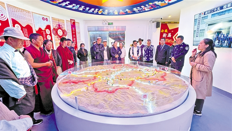 9月14日,拉孜縣曲下鎮(zhèn)以鑄牢中華民族共同體意識為主線,舉辦首屆“格?;ㄩ_石榴紅·凝心鑄魂新征程”運動會暨“迎中秋、慶團結”茶話會?!D為各民族群眾代表參觀拉孜縣鑄牢中華民族共同體意識教育館。