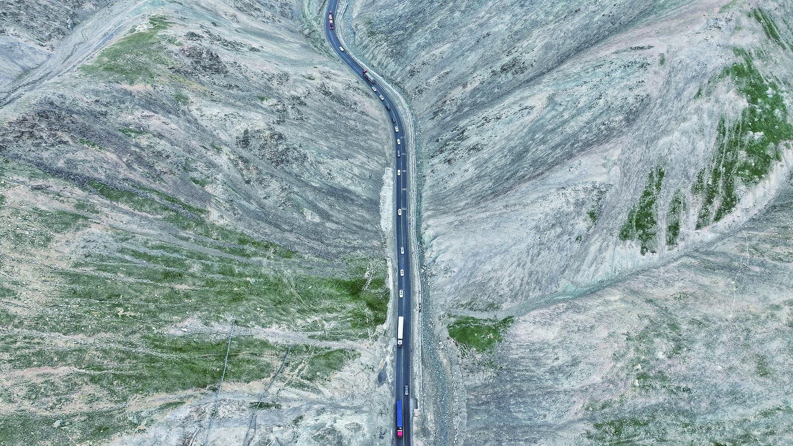 唐古拉,藏語(yǔ)意為“高原上的山”,唐古拉山即是高原的山嶺,山勢(shì)呈西北東南走向,終年積雪不化,是青海和西藏的分界線,大部分山脈海拔在6000米以上。唐古拉山是青藏公路必經(jīng)關(guān)口,也是青藏公路的最高點(diǎn)。根據(jù)勘察,筑路指揮部選定海拔5231米的唐古拉山口作為公路翻山點(diǎn)。