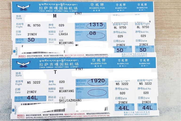 經(jīng)綿陽中轉(zhuǎn)的跨航司中轉(zhuǎn)登機牌樣式。