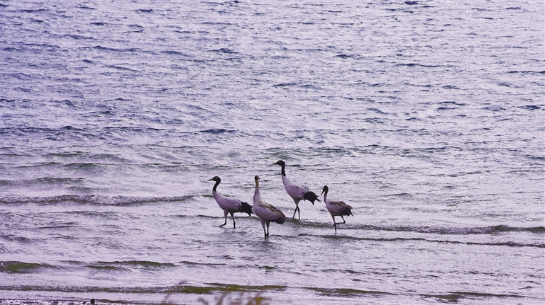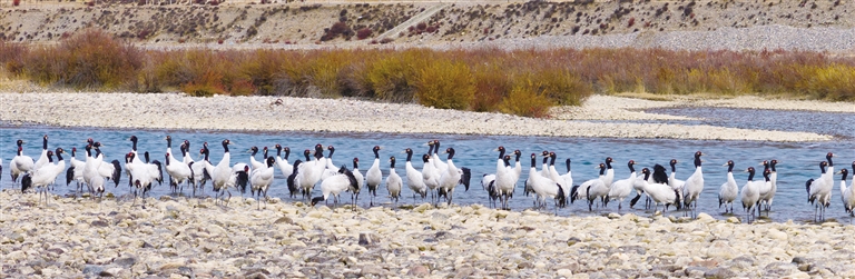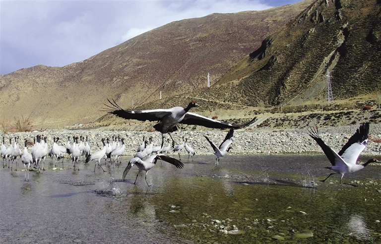 記者了解到,近年來隨著西藏高度重視黑頸鶴等野生動物的保護工作,通過建立黑頸鶴國家級自然保護區(qū)、實施生態(tài)修復工程,有效改善了黑頸鶴的生存環(huán)境。據(jù)統(tǒng)計,西藏境內(nèi)的黑頸鶴數(shù)量由不到3000只增加到1萬多只,種群數(shù)量也在持續(xù)增長。(圖由洛克 益西曲珍提供)