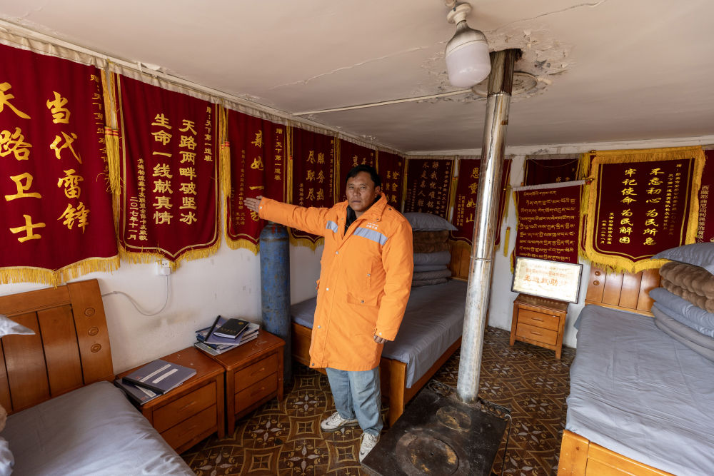 這里的救助站吸引了記者的注意。進(jìn)入房間,內(nèi)有床鋪、氧氣瓶、抗高反藥等物品,四面墻上掛滿錦旗。一封毛筆書寫的紅底感謝信格外顯眼,信中表達(dá)了對(duì)地嘎、東力、次仁多吉三名養(yǎng)路工人的感謝。信中寫道:“在那漫長(zhǎng)的10個(gè)小時(shí)里,你們不顧危險(xiǎn)和疲憊,想盡辦法讓我脫險(xiǎn)?!?/p>